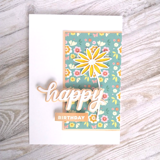 ReplyDeleteHow amazing to find this beautiful paper in the challenge colours! The die cut sentiment and daisy are the perfect additions! Vicky x